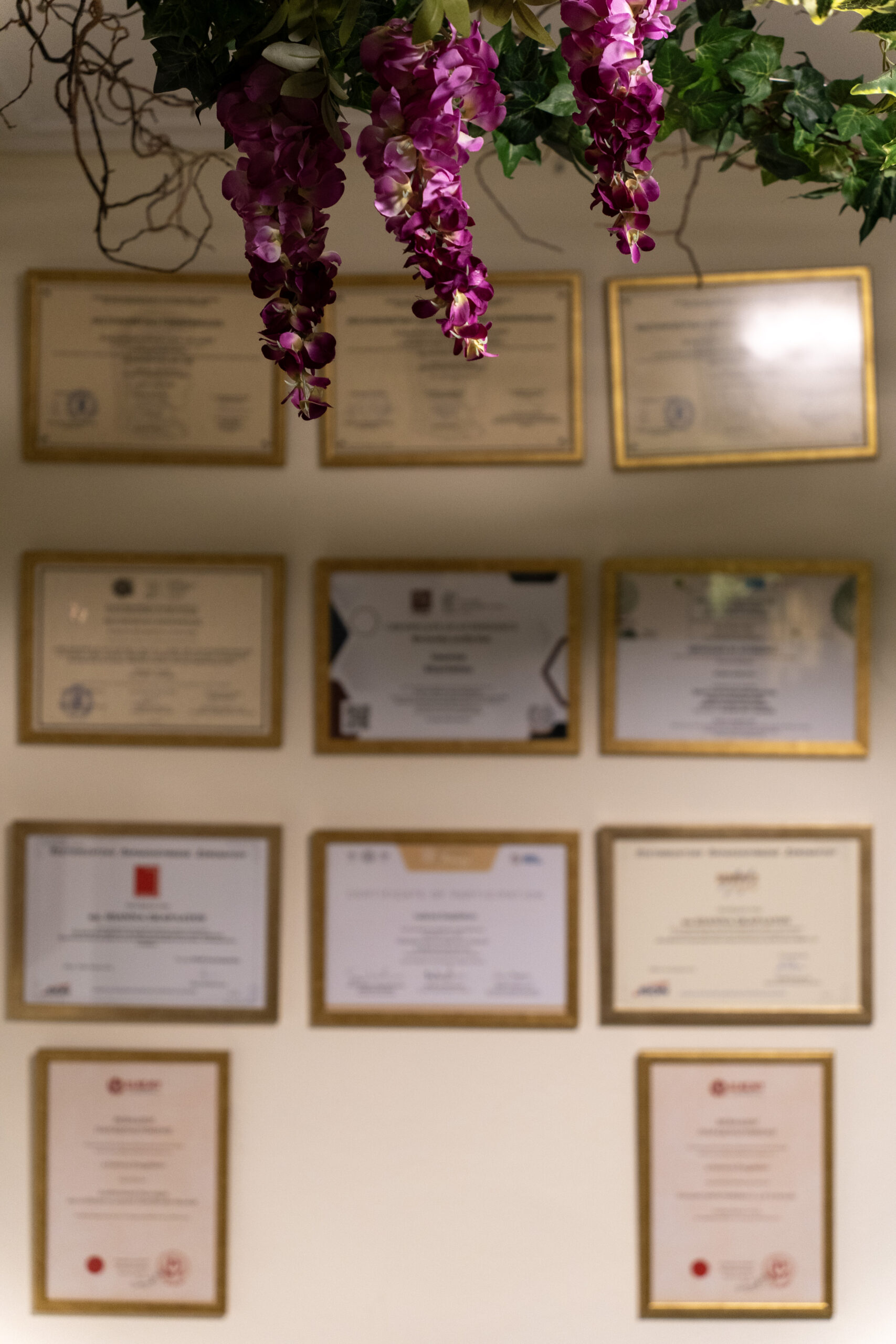Είναι πιστοποιημένη σύμβουλος επαγγελματικού προσανατολισμού ενώ παράλληλα έχει πιστοποιηθεί στη διενέργεια πολλών ψυχομετρικων τέστ σε παιδιά, εφήβους και σε ενήλικες, όπως το Bender Gestalt,το MMPI2 και άλλα.